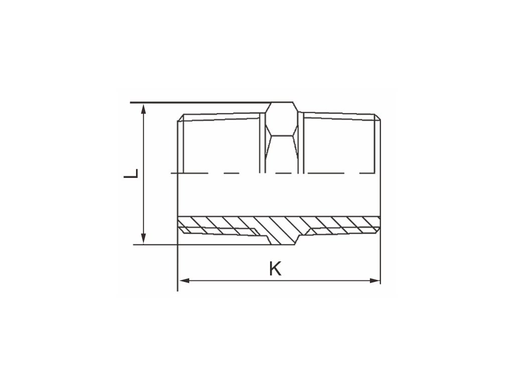 Nerezový dvojnipl s vnějšími závity a vícehranem uprostřed.